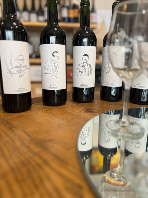 This collection of six labels "Mirer, humer, grumer" brings you back to the basics of wine tasting: observe, smell, swirl, taste, aerate in your mouth, taste again.