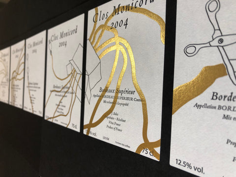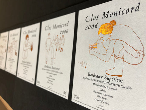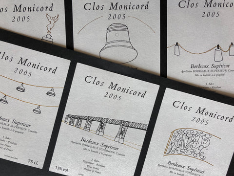 This series represents daiy life at Clos Monicord. The simplicity of the labels are a juxtaposition to the hard work and toil that goes on in creating this wine. It is the simple joy of tasting the finished wine that makes it all worthwhile. The gilded lines add the touch of magic to the labels, to express the uncontrollable (terroir and climate), but invaluable elements in wine making that add a certain something to make this wine truly delicious.