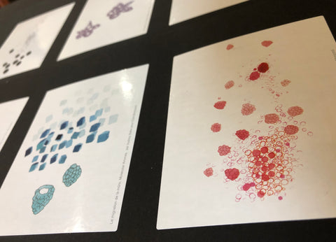 white and matte paper emphasizes the textural aspect of the paper. As opposed to matte, we have letters that form colorful watercolor words with selective varnish. Color intensities and brilliance vary depending on the viewing angle.