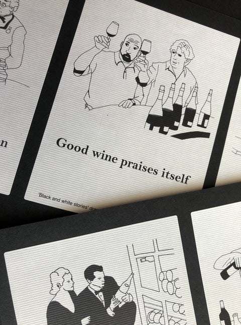 This collection of handmade fine line drawings is an interpretation on the image of wine that surrounds us in every moment we cherish. Wine is an element that has accompanied us in history through many centuries, together with famous quotes, sayings, scenes and symbols. The making and history of wine evokes of emotions that are depicted in different scenes. These can relate to all of us in the role of our story: past, present and future.
